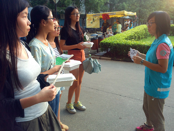 志愿站干事认真讲解活动内容