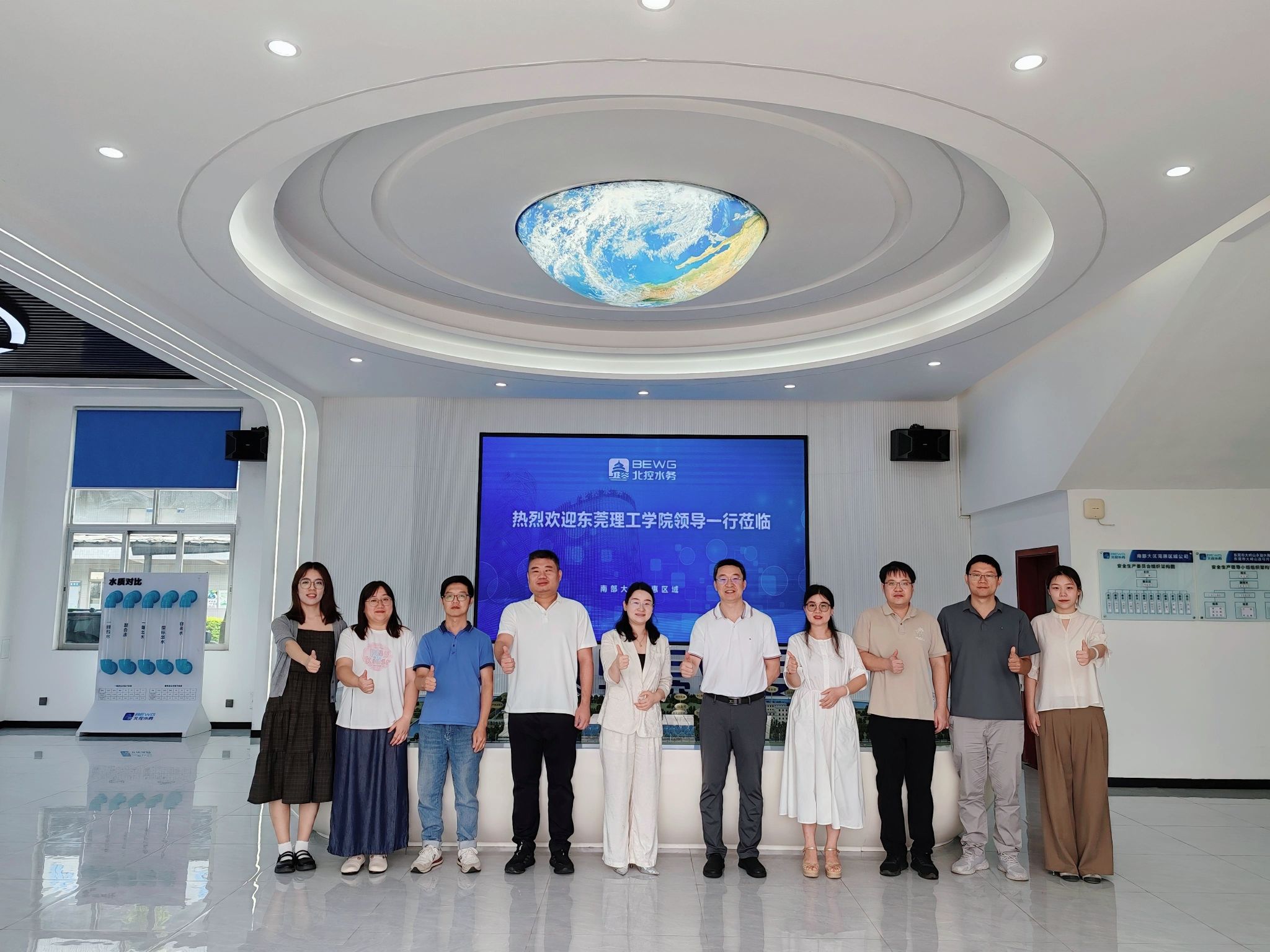 7月23日上午,环建学院高峰副院长带队,环境工程系陈忠明主任、臧云浩老师、方嘉声老师一行赴北控水务集团大岭山永溢水务有限公司开展调研活动。北控水务集团南部大区莞惠区域公司综合部杨静兰总经理、东莞市大岭山连马污水处理厂项目公司张达成副总经理、北水教育智慧实训中心负责人左婉璐、北水教育智慧实训中心项目主管刘子滢等公司高管出席座谈。双方就深化校企合作、推动产教融合、共建产业学院与人才培养等议题进行了深入交流。