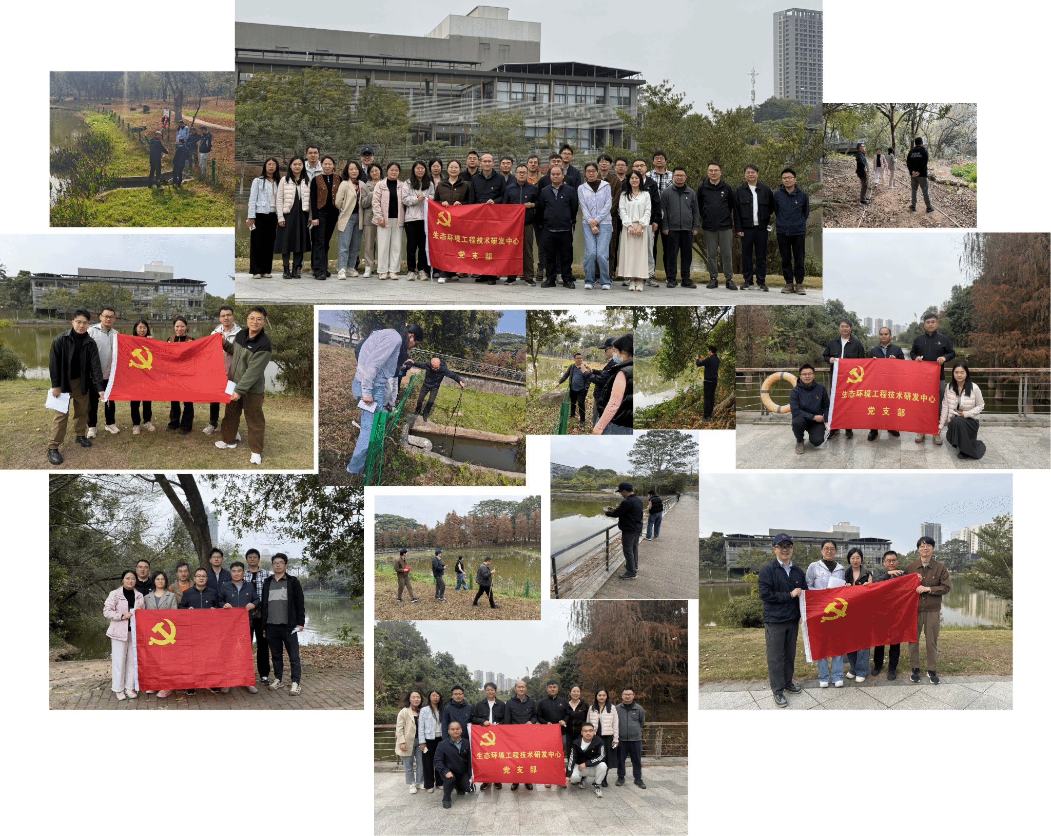 为深入贯彻落实党的二十大关于“推动绿色发展,促进人与自然和谐共生”的战略部署,积极响应“美丽中国”建设号召,生态环境工程技术研发中心党支部以“党建红”引领“生态绿”,于2026年1月28日正式启动“以专业之力,守护校园河湖清澈线”系列主题实践活动。活动以首次校园河湖污染源调查为起点,组织支部党员化身“生态先锋”,通过实地探勘、技术排查,以专业力量守护校园水环境,为建设“水清、岸绿、景美”的生态校园迈出坚实一步。