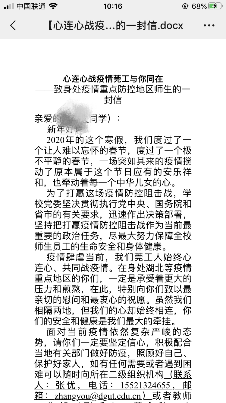 因为疫情影响推迟开学,校方心系师生们的安危,尤其是身处疫情重点区域的老师和同学们。