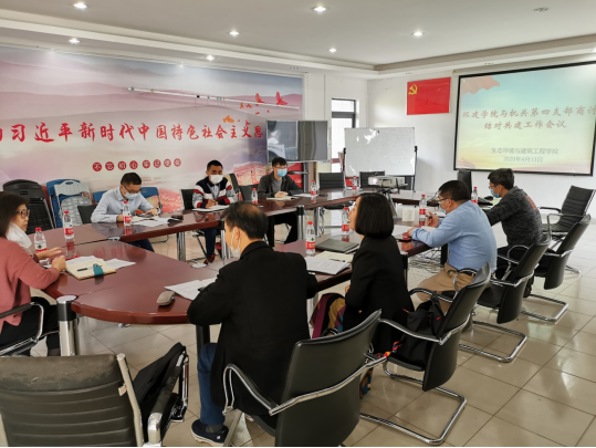 2020年4月13日上午,机关第四党支部委员会一行来到环建学院,与该学院建筑工程系教师党支部委员会,就基层党组织结对共建工作方案进行磋商。磋商工作会议在机电楼12G401会议室举行,环建学院党委书记李纠主持。环建学院党委委员参加了会议。