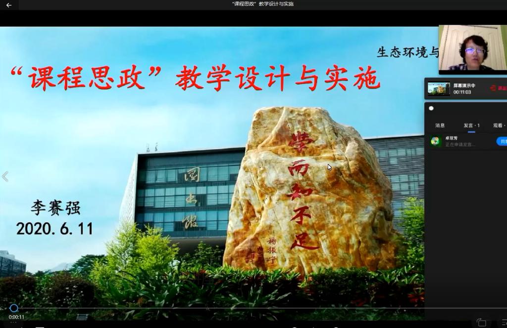 本次讲座的开展也为环建学院今年教育教学大讨论的重点工作之一 “绿水青山就是金山银山”系列主题课程思政教学案例征集活动奠定了坚实的基础。在本学期结束前,学院将遴选出多门优秀的课程思政教学案例,并邀请李赛强教授通过云会议的形式给予逐一点评指正。待教学案例修改完善后,进一步通过视频录制的方式固化成果并推广。