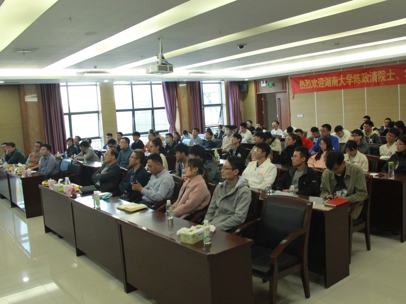科技处处长范洪波教授、湖南大学土木工程学院副院长华旭刚教授、中国铁建华南区域总部东莞公司乔险涛总工程师,以及近百余名学院师生到场听取讲座。