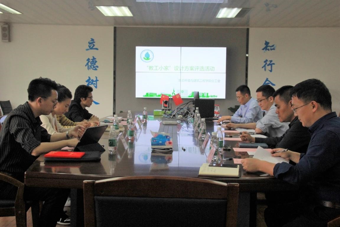 在松山湖区机电楼12K205开展“教工小家“设计方案评选活动。中国建筑学会室内设计分会全国理事郑汉江、东莞理工建筑设计研究院有限公司院长兼董事利可洋、东莞市大乘建筑工程技术有限公司总经理严瑾、东莞市佐恩工程设计有限公司总监卢锡华、环建学院院长郑愚、党委副书记诸小妮、建筑与工程管理系副主任李宁、校工会陈健明以及学院教师代表、学生代表出席此次活动。活动由学院工会主席黄文通老师主持。