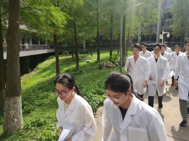 图3 指导老师带领学生到紧急疏散集合点并讲解防灾减灾相关常识