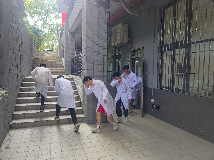 5月11日以研究生为主在12G104开展了防灾减灾应急演练,模拟研究生实验期间突发火险情况。模拟研究生实验期间突然突发火情,研究生根据实际火情,立即从实验室安全消防器材中找到灭火器,第一时间对起火点进行灭火;其余研究生立即捂住口鼻,快速有序地从疏散线路跑到空旷场所。