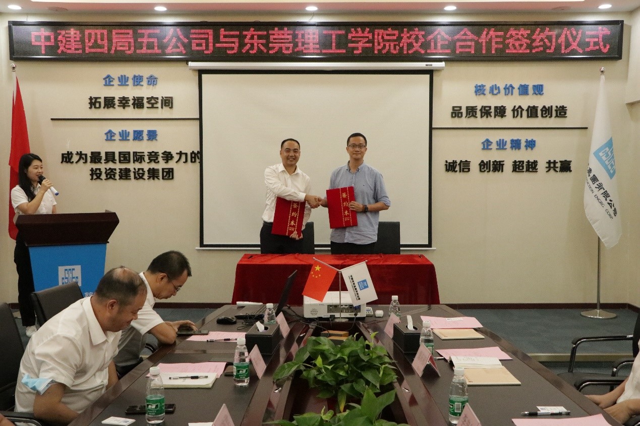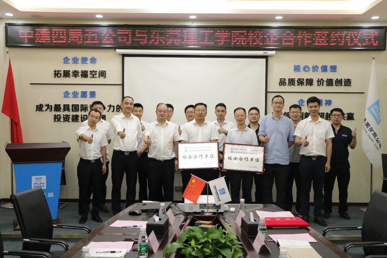 院长郑愚,招生办公室主任魏东初;中建四局五公司党委书记、董事长石连君,纪委书记陈小红,副总工程师郑强,总经理助理张春辉等20余人参加本次仪式。