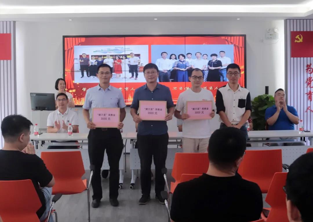 接着举行“鹏万里考研奖教金”颁发仪式。首届“鹏万里”考研奖教金获得者为徐剑辉、廖建波、李宁、谢东、焦哲、艾心莹、张云飞、李衍亮、黄文通以及学工团队,他们为人师表,爱岗敬业,在教书育人岗位上无私奉献。鹏万里教育科技有限公司总经理李溯祝贺以上对获奖的老师并送上节日的祝福,同时他表示会继续大力支持教育事业的发展,回馈母校,回馈社会。