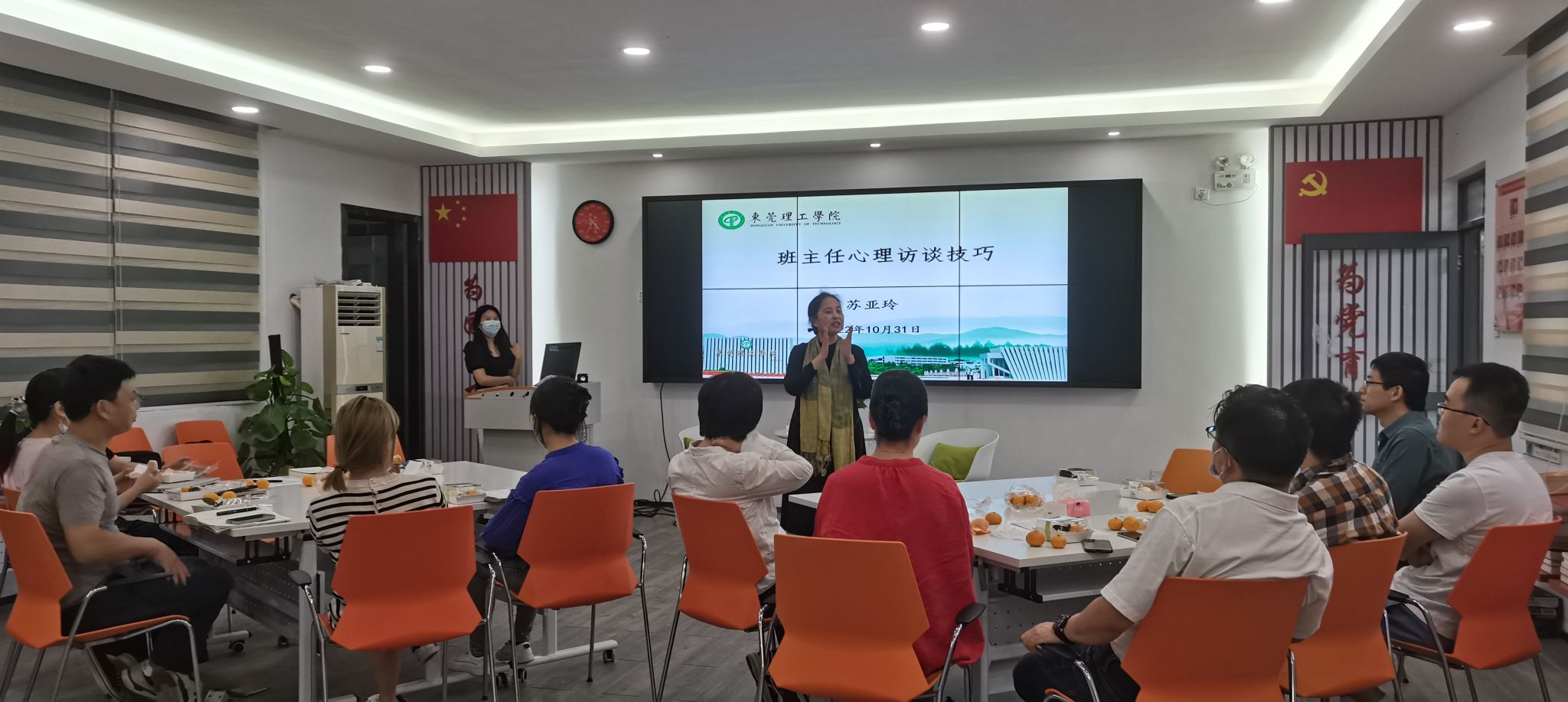 举办班主任心理工作系列培训“谈心谈话的艺术”沙龙。本次讲座嘉宾为苏亚玲。各年级班主任代表参加活动。讲座由环建学院心理站站长雷菲主持。