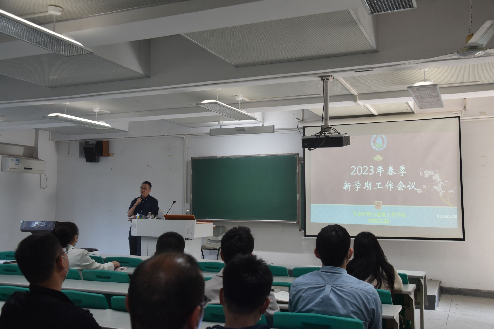 组织全院教职工召开2023年春季新学期工作会议,郑愚院长主持会议。