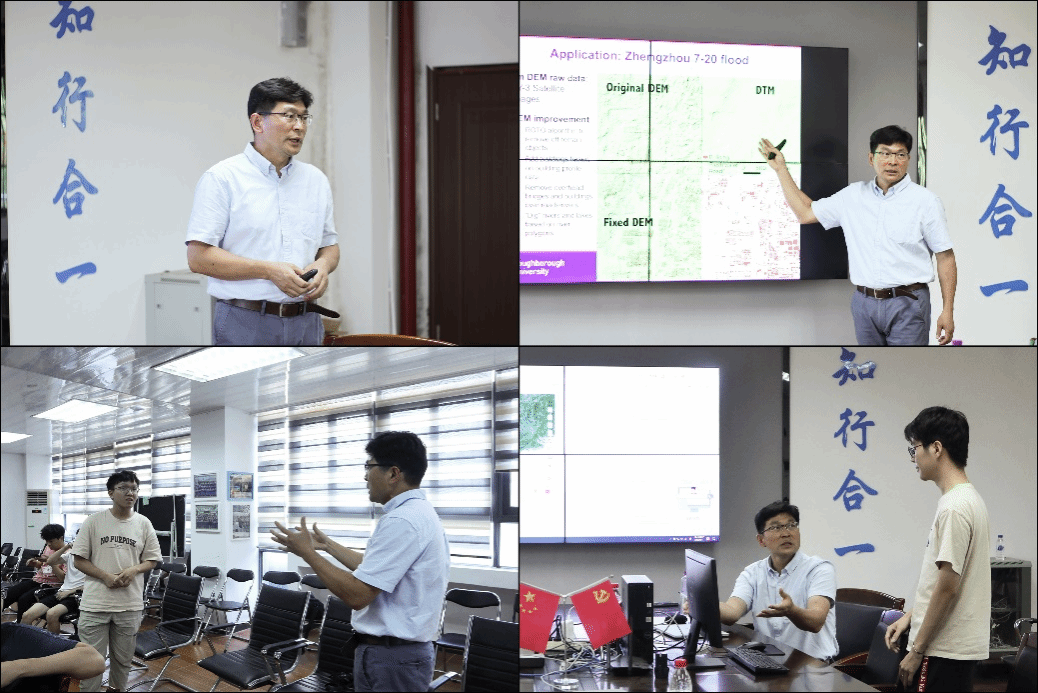 活动开始,梁秋华教授先从建校历史、综合实力、学术培养等方面介绍了拉夫堡大学的基本情况。随后,梁秋华教授以“用于多危害、多过程建模的高性能集成水动力建模系统”(A High-Performance Integrated Hydrodynamic Modelling System for Multi-hazard, Multi-process Modelling)为题开始本讲座,详细介绍了高性能水动力系统研发的持续性工作,最终实现城市尺度高精度(10m网格)的洪水模拟。该系统能够利用多个图形处理单元(GPU)进行并行计算,从而能够对整个城市或100平方公里甚至1000平方公里流域的高瞬态洪水动态以及其他相关过程进行高分辨率和稳定的模拟或预测。