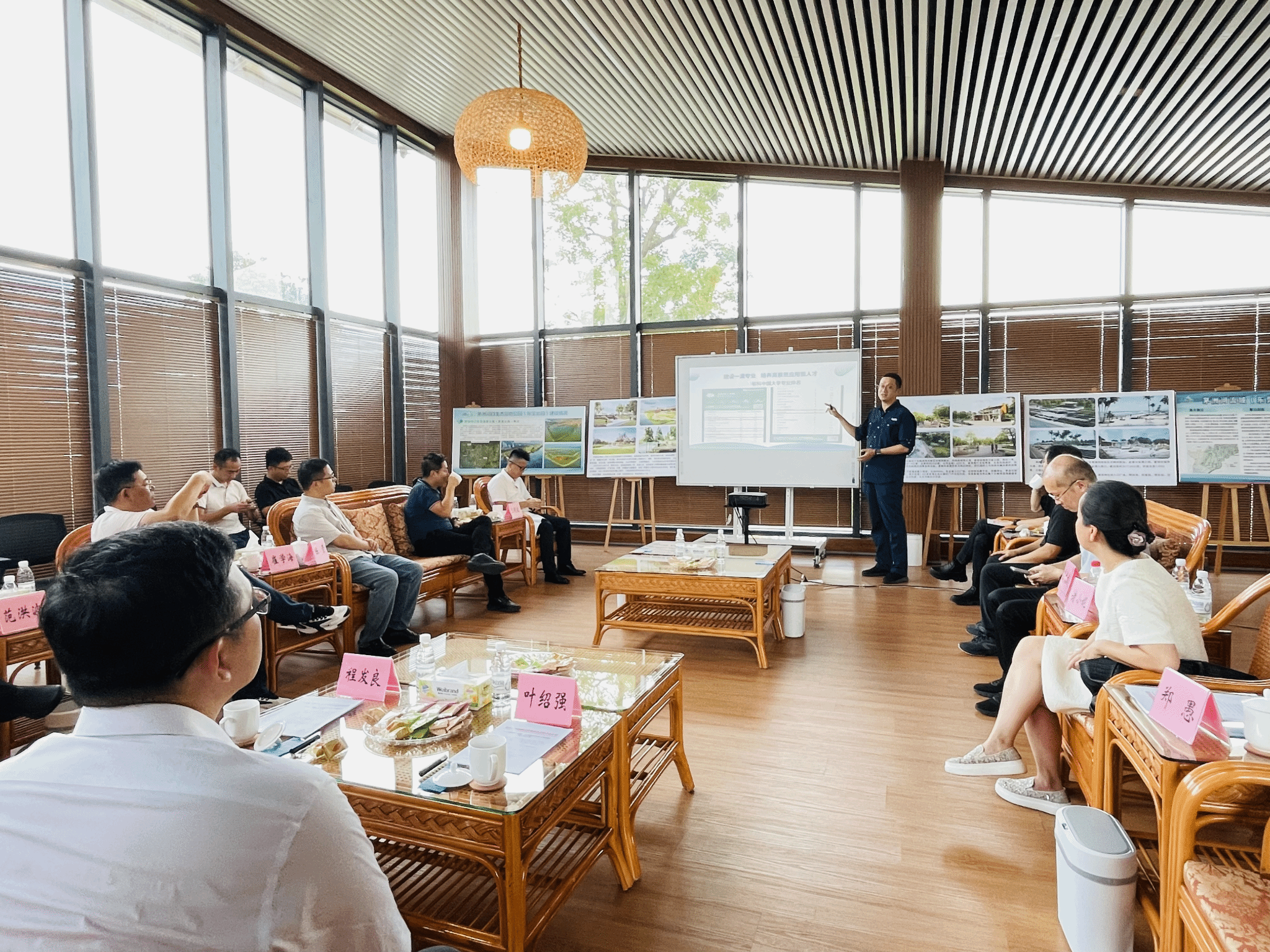 随后,调研组一行抵达滨海驿站,在驿站会客厅听取滨海湾新区“美丽海湾”相关的滨海公园、岸线绿道建设情况汇报,参会人员开展座谈交流。