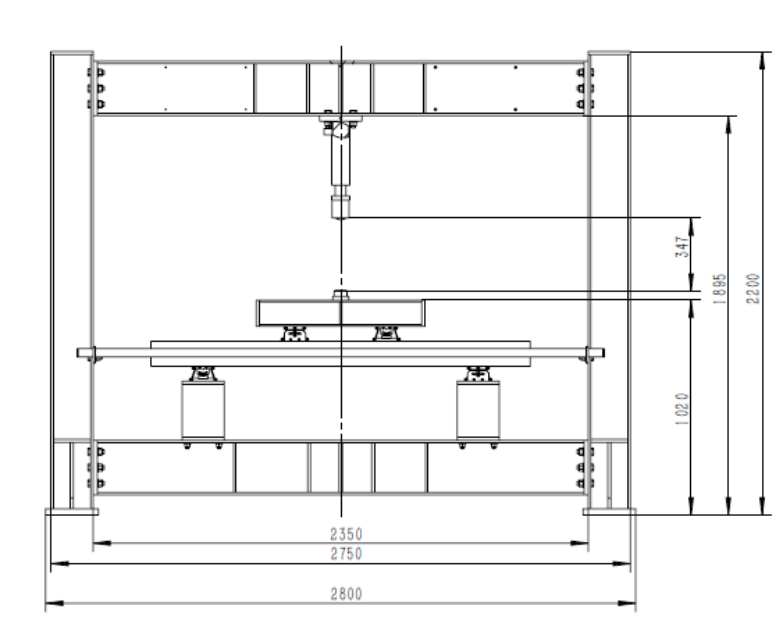 1、加载框架高度(长*宽*高): 2800*200*2200mm,承载力:200kN,加载横梁可在高度方向上下调节,调整最小间距不小于100mm。支墩可在底座长度方向调整,提供详细的有限元分析报告。