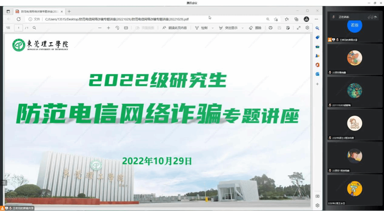 邀请到红棉派出所的苏东阳警官为2022级研究生开展防范电信网络诈骗线上专题讲座,爱爱视频