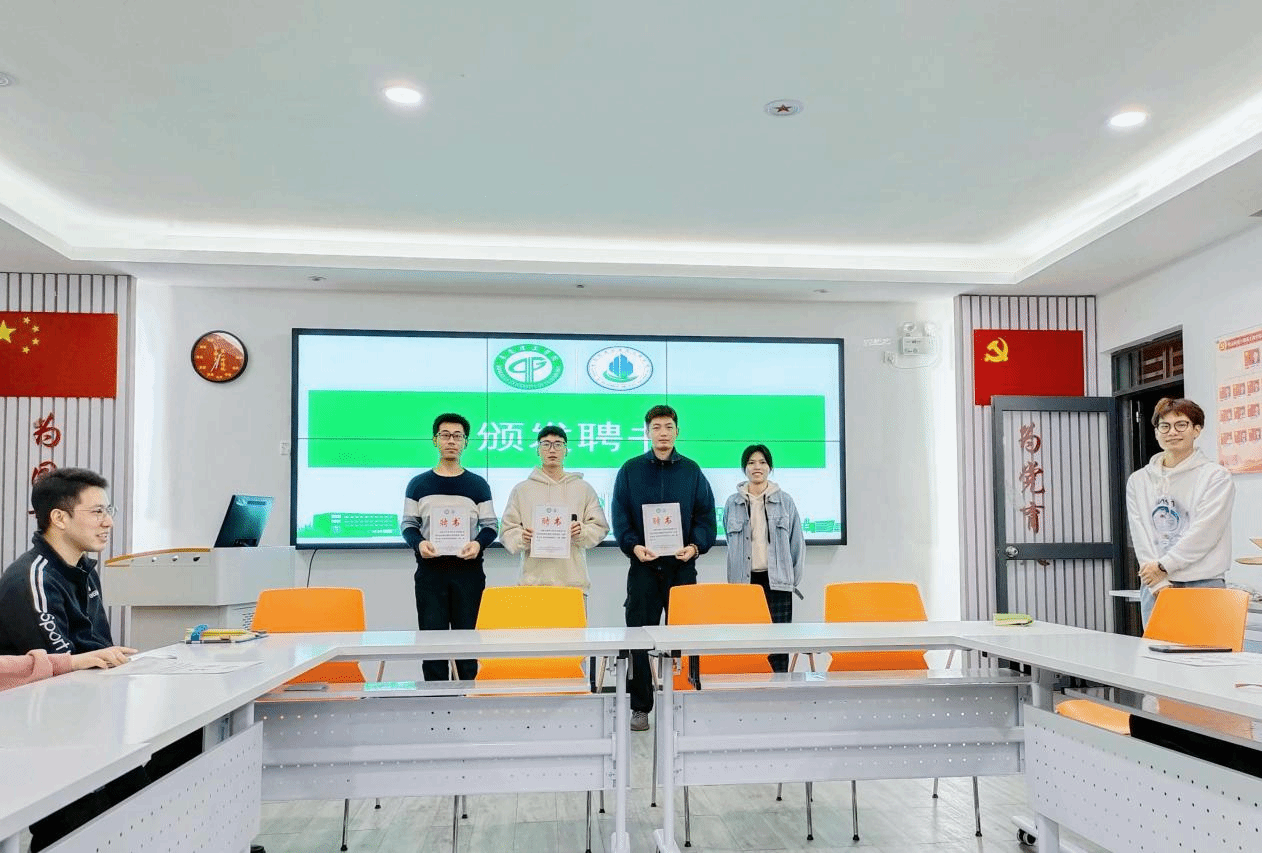 研究生会指导老师胡胜为第二届研究生会主席团成员及各部门干部颁发聘书。